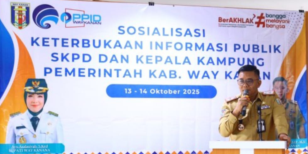 WAY KANAN GS – Sekretaris Daerah Kabupaten Way Kanan, Machiavelli Herman Tarmizi, S.STP., M.Si., membuka secara resmi Kegiatan Sosialisasi Keterbukaan Informasi Publik di Lingkungan Pemerintah Kabupaten Way Kanan Tahun 2025, yang berlangsung di Ruang Buway Pemuka Pengiran Tuha, Senin (13/10/2025).
